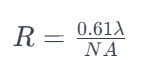 分辨率是顯微鏡成像中一個(gè)重要的指標(biāo),它決定了觀(guān)察者能夠分辨的最小細(xì)節(jié)。分辨率與波長(zhǎng)之間存在直接的關(guān)系,由以下的阿貝分辨率公式所示:
