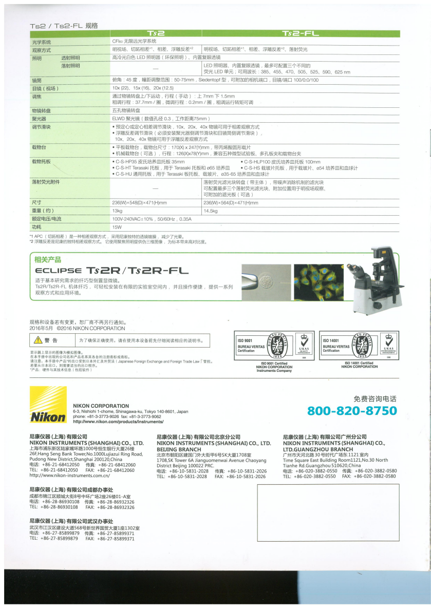 產(chǎn)品名稱: 尼康 Nikon Ts2 倒置顯微鏡